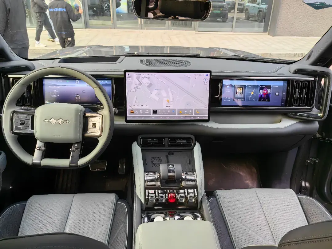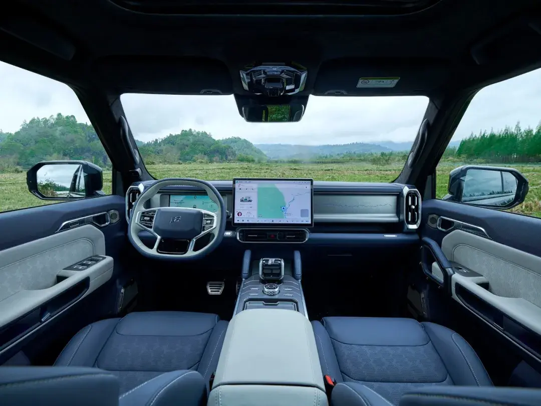 首先,豹5拥有强悍的动力,其中系统总功率505kw,总扭矩760n·m,百公里加速4.8秒。在云辇-p系统的赋能下,豹5拥有310mm最小离地间隙和790mm最大涉水深度,加上蠕行模式、豹式掉头、低速四驱、差速锁等,可以轻松征服各种复杂路况。