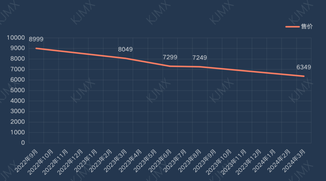 基于以上价格数据,我们可以得到iphone 14 pro max售价变化的大致走势图。