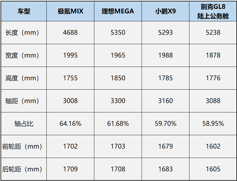 在如今的mpv市场里,极氪mix只能算是小个头,车长只有4688mm,但它的轴距却达到3008mm,轴占比超过64%,是目前轴占比最高的mpv车型。紧凑型的身板配上中大型车的轴距,既方便停车,又能具备极高的空间利用率,对家庭用户十分友好。这种准确的产品定位,无疑能进一步提升其设计美感。