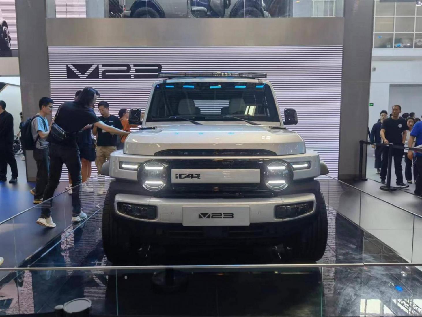 这两款车的设计都十分有意思,其中v23属于当下流行的方盒子越野车,但尺寸明显比同类产品更小,细小的身板配上经典的越野设计元素,让它有着一股“萌凶”神态。