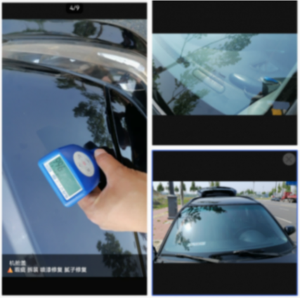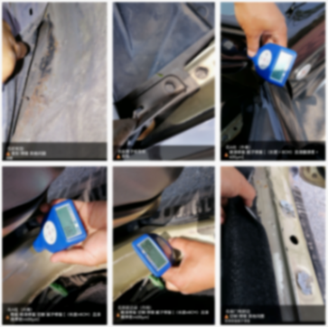 接着就是的外观漆面的检测,用漆膜仪把全车漆面包括abc柱、两边门槛纵梁漆全部依次打了一遍,发现全车都经过了喷漆修复,并且基本上都存在腻子修复。