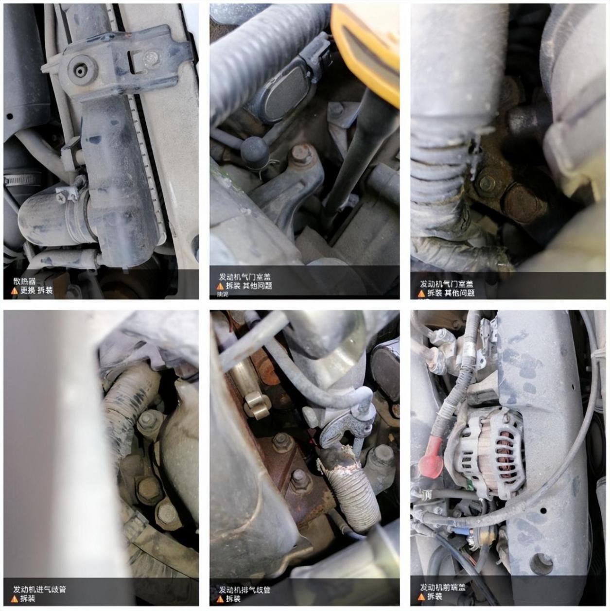 接着我们的检测继续来到机舱,发现散热器是换过的,并且是换的副厂配件,不要问我为什么知道,贴纸还在上贴着呢。发动机气门室盖,发动机前端盖,进排气歧管都拆装维修了,气门室盖有老化油泥。