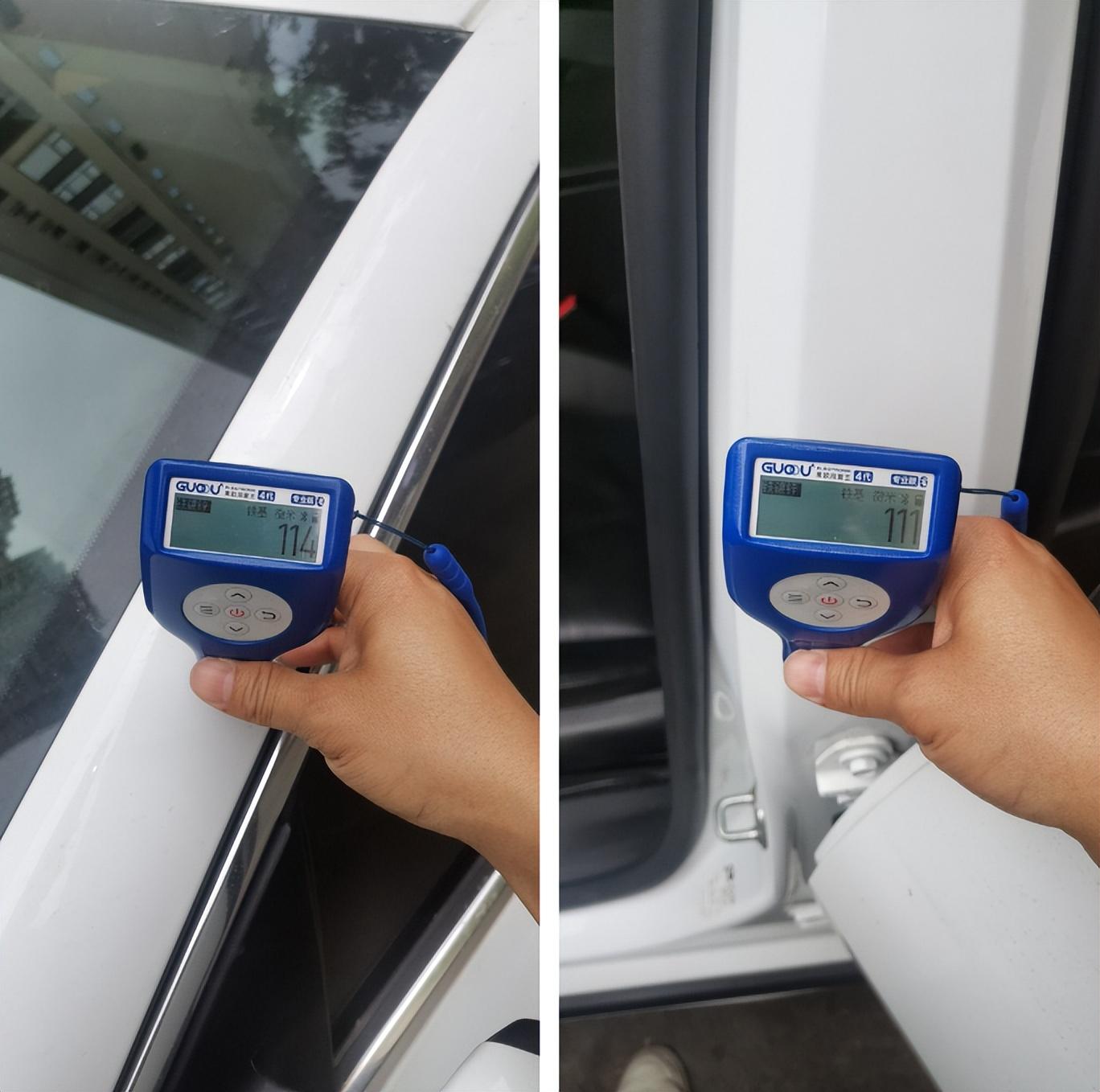 首先排除车辆左侧车身的结构件,漆面数值均在110微米左右,可以排除受损修复。