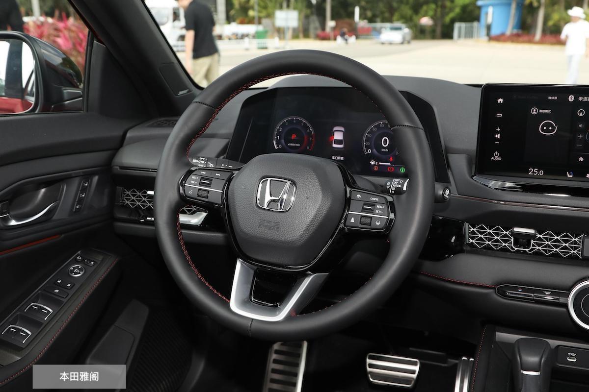 其实从某种程度上来说,两款车在视觉效果上会有一定相似度,这相似度就来自于它们同样扁平且修长的引擎舱结构,而且贯穿装饰的下进气孔,都带有运动包围的底盘四周,都让车辆自带一种运动效果。不过,底盘采用全黑包边的雅阁还是更实在一些,即便有黑色小尾翼,仍会显得简洁且耐看。