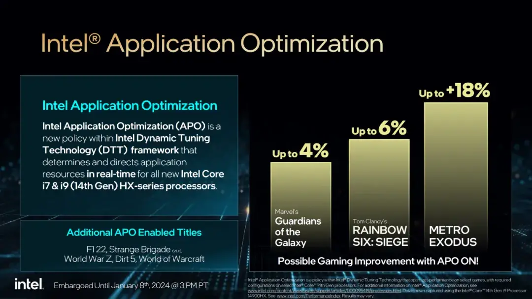 好在 intel 终于也是意识到了这个问题,同 14 代酷睿发布时带来了名为 intel apo 的应用程序优化工具。
