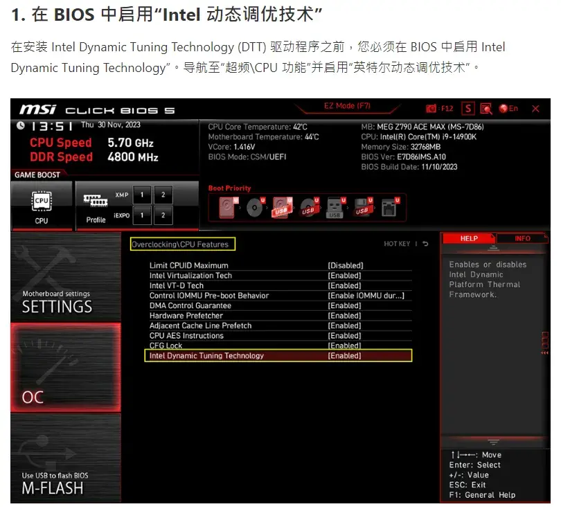 要使用该工具,需要在主板 bios 中启用 intel dtt 选项并安装对应驱动,许多主板厂商也给出了具体操作步骤。