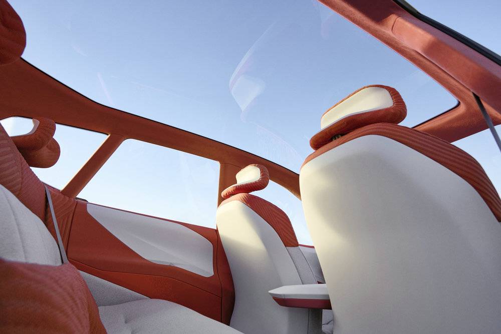 其次在内饰材质方面,宝马在概念车的材质上使用了大量100%天然、植物或矿物基且不含石油衍生物的材料。而在颜色的选择上,宝马的设计团队采用了橙色和白色的组合。这两种颜色在大尺寸的天幕和车窗透过的日光下,显得清新而柔和。