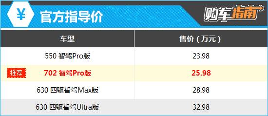 更高一级的630 四驱智驾max版比推荐车型增加了双电机四驱系统,配置方面标配可高低调节的空气悬架、ar-hud、车内香氛系统、iadc智能漂移控制系统以及icvc智能底盘矢量控制系统。相比之下,其主要升级集中在驾驶感受方面,如果只是日常家用,那么升级的必要性并不是很强,而且两者之间3万元的差价并不算便宜。