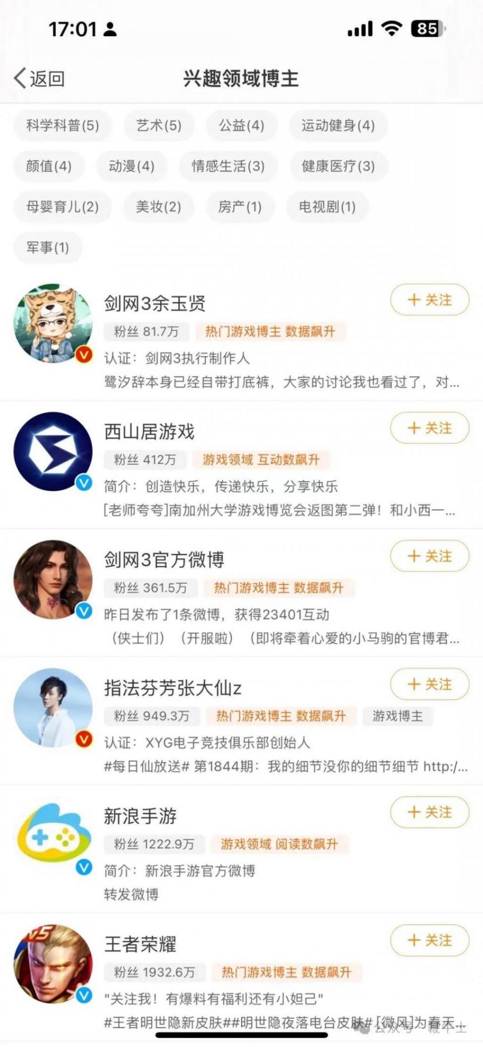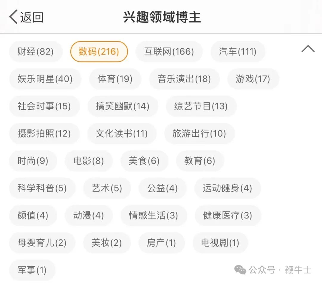 雷军微博共关注1535人,其中多为数码、互联网、汽车、财经行业博主。
