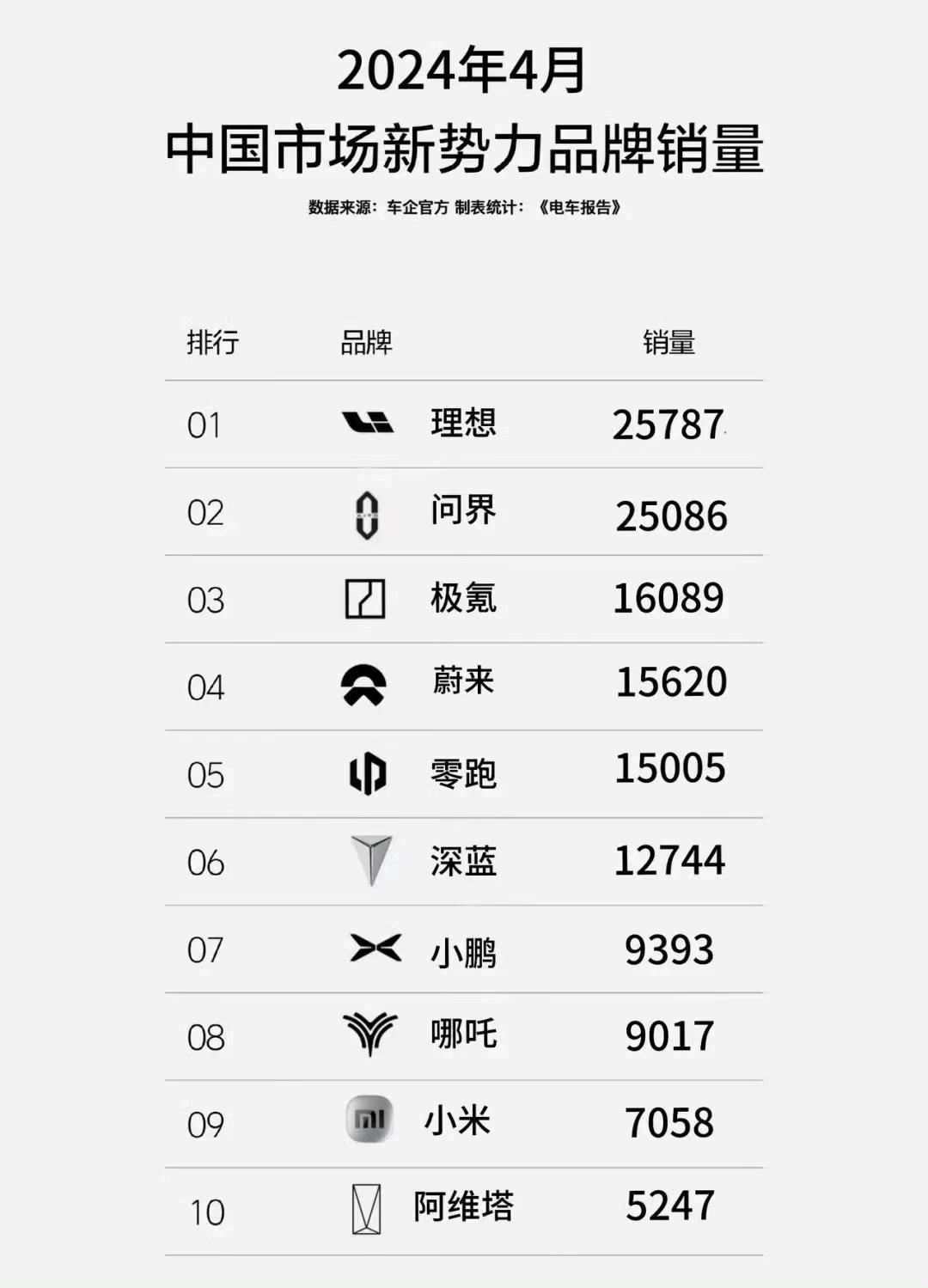曾几何时,车圈可是"蔚小理"三分天下的景象。但在这个被称为"最热闹"的4月,谁曾想"蔚小理"的光环竟已暗淡?反倒是那些一度被它们掩盖的"三朝元老"——理想、问界和零跑重新强势卷土重来,成为新的领头羊!