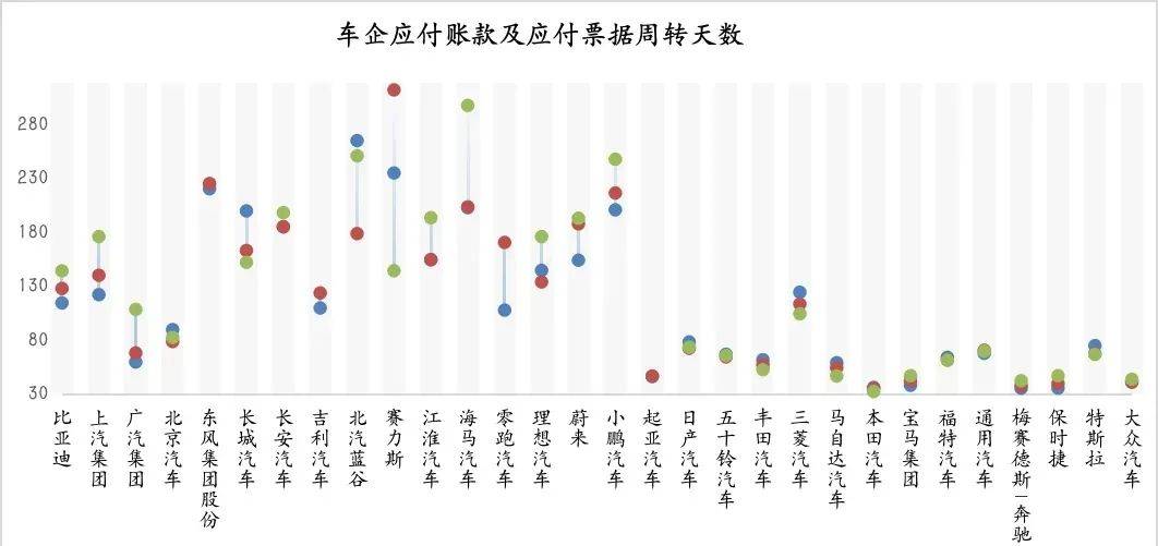 即使在2024年严峻的市场环境下,丰田汽车应付周转天数变动不大,为53天。
