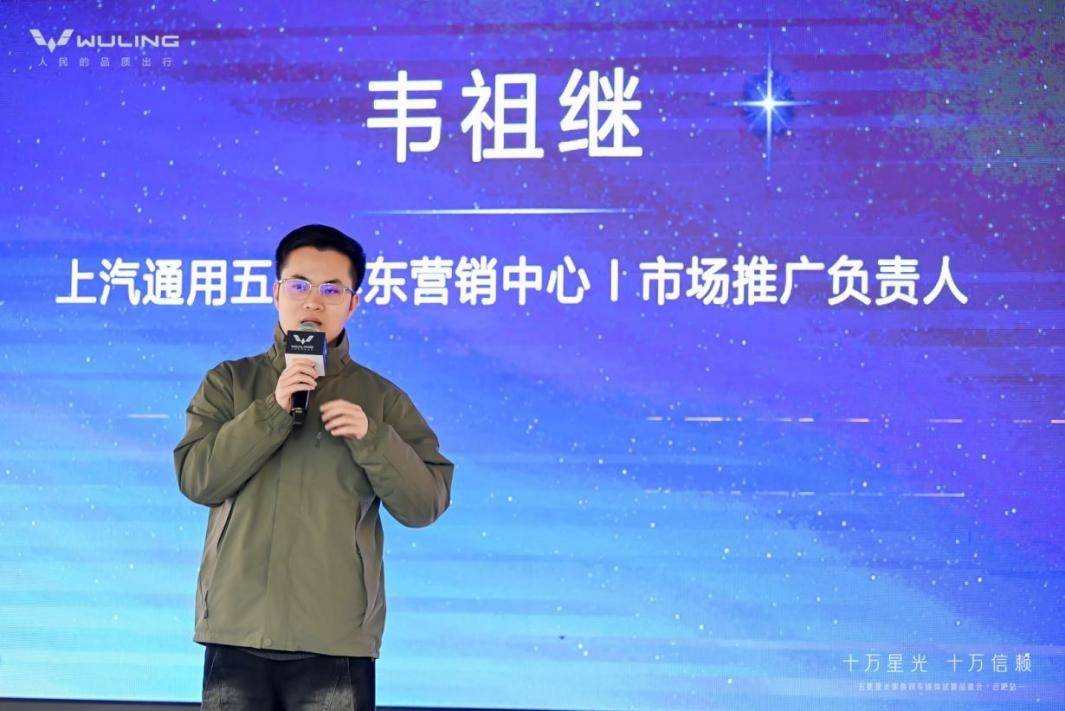 活动当天上汽通用五菱华东营销中心 市场推广负责人 韦祖继先生上台进行分享,首先感谢用户长时间以来对五菱品牌的支持和认可,五菱星光家族正式迎来超十万销量里程碑,未来五菱汽车还将始终坚守“人民需要什么,五菱就造什么”的理念,不断向上、向新,与广大人民并肩同行,持续推出类似五菱星光s等符合用户需求的高品质乘用车产品!