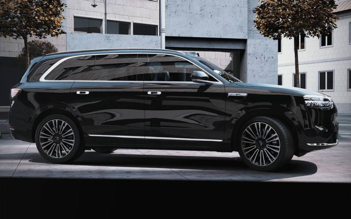 侧面则采用了平直大气的设计,既有大面积的窗线带来通透视野,又有笔挺的车身提升气场与豪华感。再配合上密辐式的轮圈、银色镀铬饰条和隐藏式门把手,属于中大型新能源suv所该有的那种范儿瞬间就出来了。
