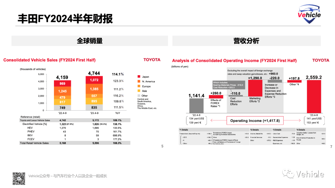 其中,第二财季(2024年7月至9月),净利润同比腰斩跌至5737亿日元,这也是丰田两年来首次出现单季度利润下降。