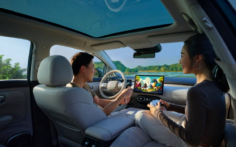 埃安ut鹦鹉龙全系标配14.6英寸中控屏和8.8英寸液晶仪表盘,车机配备ai语音助手,中高配车型带有540度全景影像功能,整体配置水平很出色。而在空间打造上,车内配备有前排贯穿走廊,方便乘客在车内移动,带遮阳帘天幕为车内营造出了舒适的采光环境。