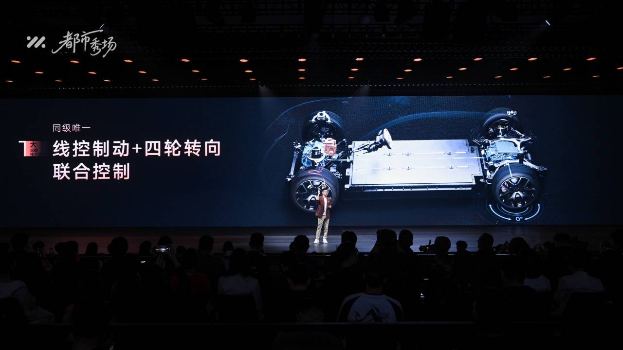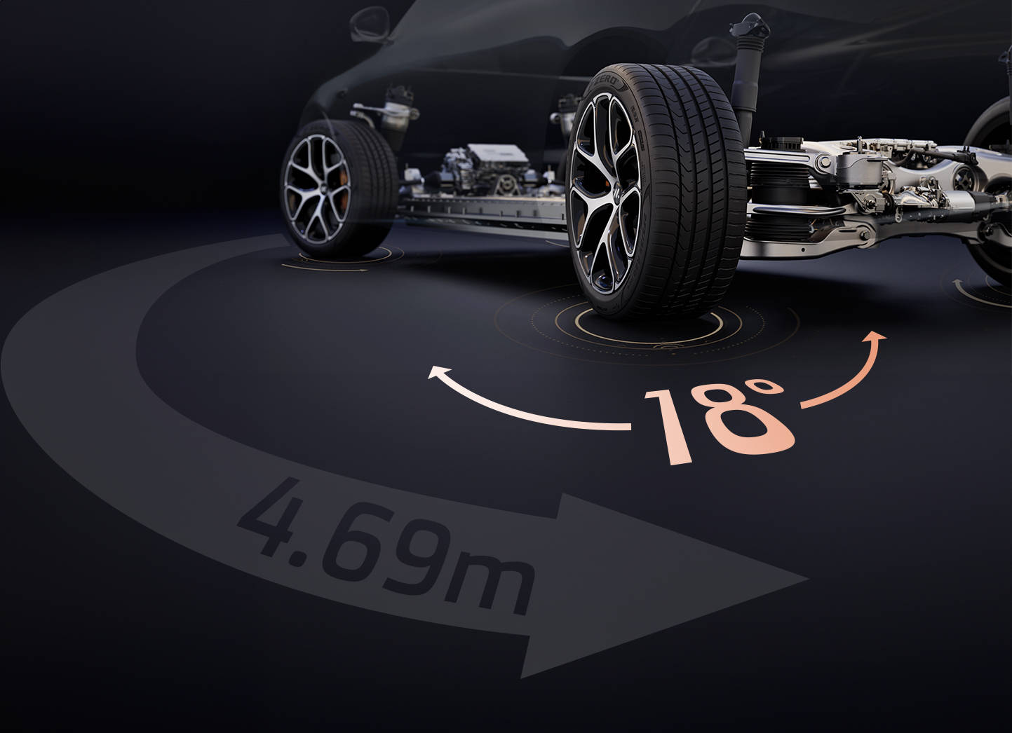底盘方面也有提升,全系配备升级的灵蜥数字底盘2.0,搭载全新线控制动系统和全新智慧四轮转向系统,后轮转向角度从之前正负12度提高至18度,转弯半径从4.99m缩小至4.69m,作为一台车长超过4米9的中大型轿车甚至比做到mini更灵活,还新增了爆胎稳定控制系统。