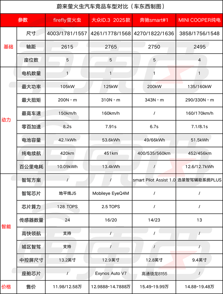 不过mini、smart的目前主流在售车型平均售价都在20万左右,这对于11.98万起售的萤火虫来说,是一个机会。