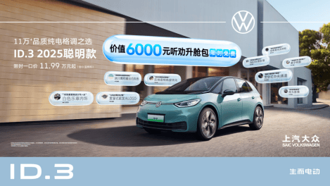 再看看新能源车领域,上汽大众在今年3月份上市的id.3 2025聪明款,也是一个不错的选择,其不仅限时免费了价值6000元的“听劝升舱包”,还在近日荣获了中国汽车能效开发与检测认证专业联盟颁发的首批一级能耗认证,已经成为新能源车市场的“宠儿”。