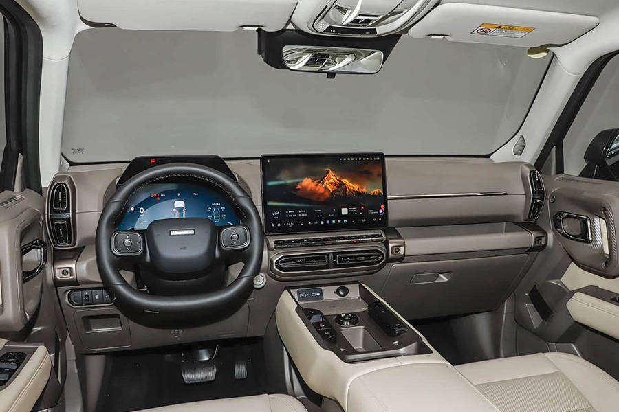 具体来看,新车作为改款车型,基本延续现款3/4刻度家族基因的设计风格,介于城市suv和传统越野车之间。值得一提的是,该车格栅中央品牌logo采用发光设计,提升车辆辨识度。
