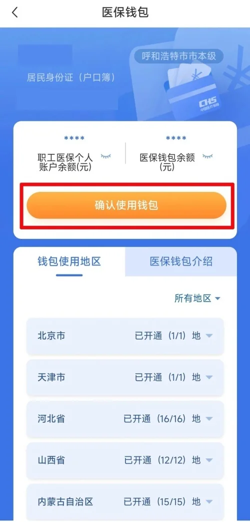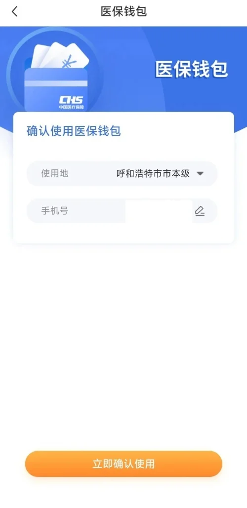 3、点击确认使用钱包,显示使用地和手机号信息,确认合适之后,点击立即确认使用,即完成钱包开立: