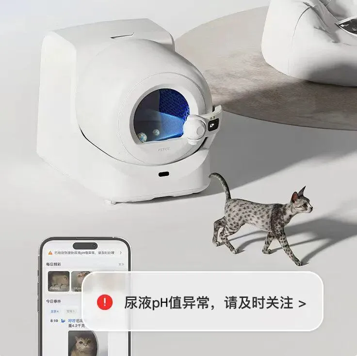 为此,petkit小佩通过ai健康监测技术,把普通的自动猫厕所,升级为一个懂健康的家庭守护站。这套小佩独有的ai视觉识别系统,能在清理前自动记录猫咪的尿团和便团,搭配ph尿检猫砂,一旦发现尿液酸碱异常或频率变化,系统会及时推送提醒。即使养了多只猫,ai也能为每只猫独立记录如厕数据。