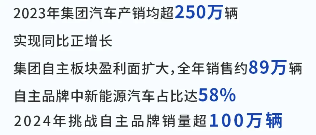 2024年广汽集团的增长点仍然在自主品牌板块,将进一步提高新能源汽车及节能汽车的占比,计划推出广汽传祺全新a级suv、a级插电混合动力suv、七座mpv,广汽埃安五座纯电suv、a级纯电轿车、昊铂全新大六座纯电suv等全新及改款车型,力争实现自主品牌销量超100万辆。