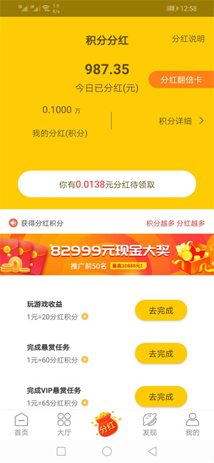 多趣赚不忘初心,把任务及提现全部收入分享给每一个用户,让用户人人都有钱赚。现在推出全民享分红,所有用户先送2000分红积分,赚取积分越高,分红就越多。