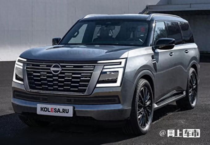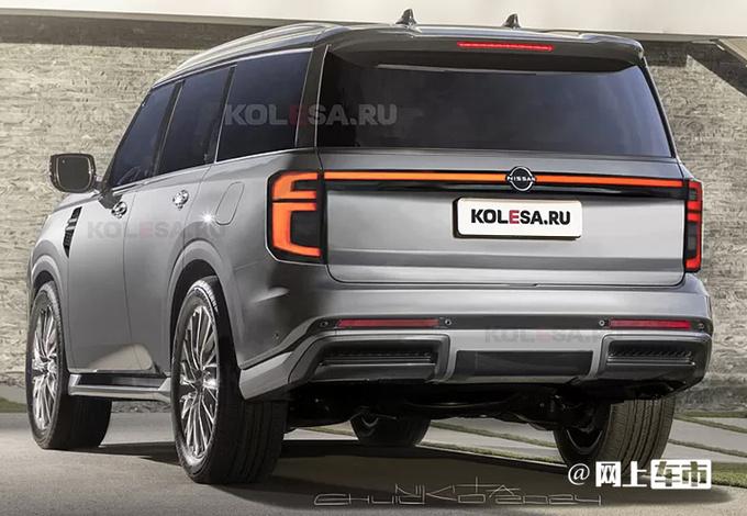 从发布的新车外观渲染图片中可以看出,日产全新一代途乐车型头部换装了全新造型的点阵式进气格栅,两侧提供了上下分层式led头灯组,并同步加入了最新家族式发光logo车标。车尾部分选用了隐藏式排气布局,上方贯穿式led尾灯组也进一步提升了车型辨识度。