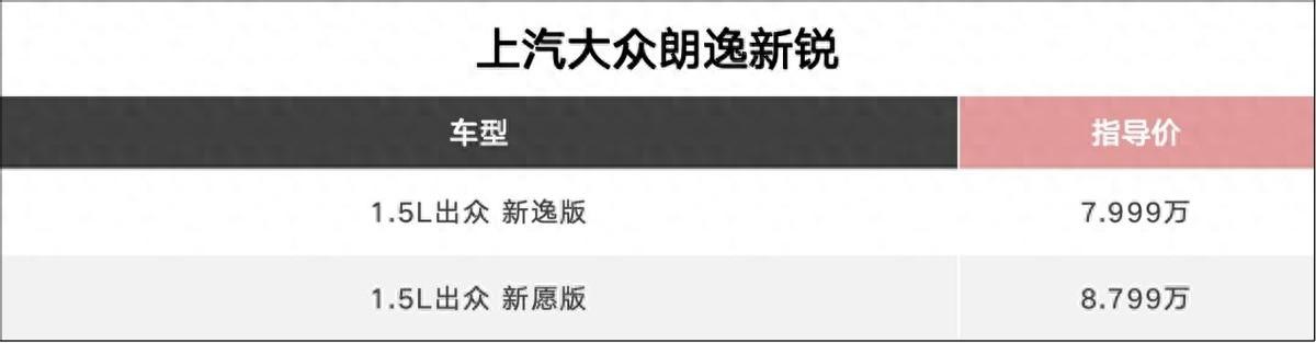 日前,上汽大众官方也宣布期待的入门级紧凑型轿车——朗逸新锐出众版正式上市,本次新车共推出2个车型版本,其售价区间为7.999万-8.799万元,相比与现款车型而言,新车不仅仅全系取消了手动挡车型,并且其价格相比于此前的售价也降了20000元以上。
