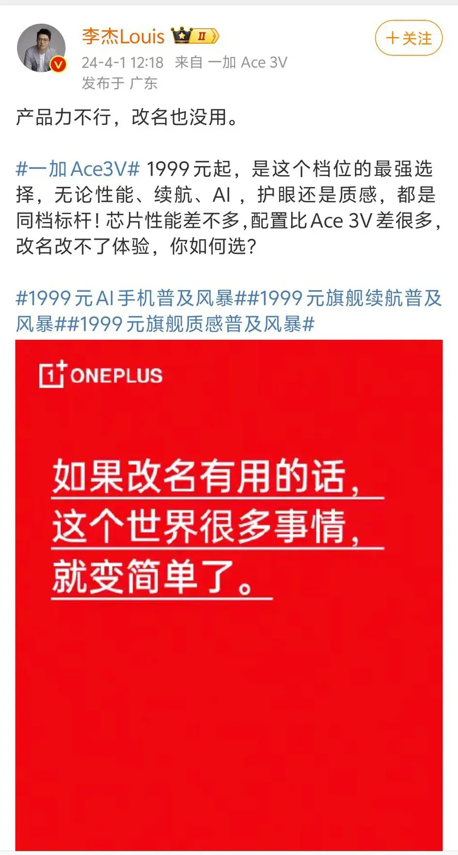 > 红米手机宣布新系列!一加总裁直说:改名也没用!有意思