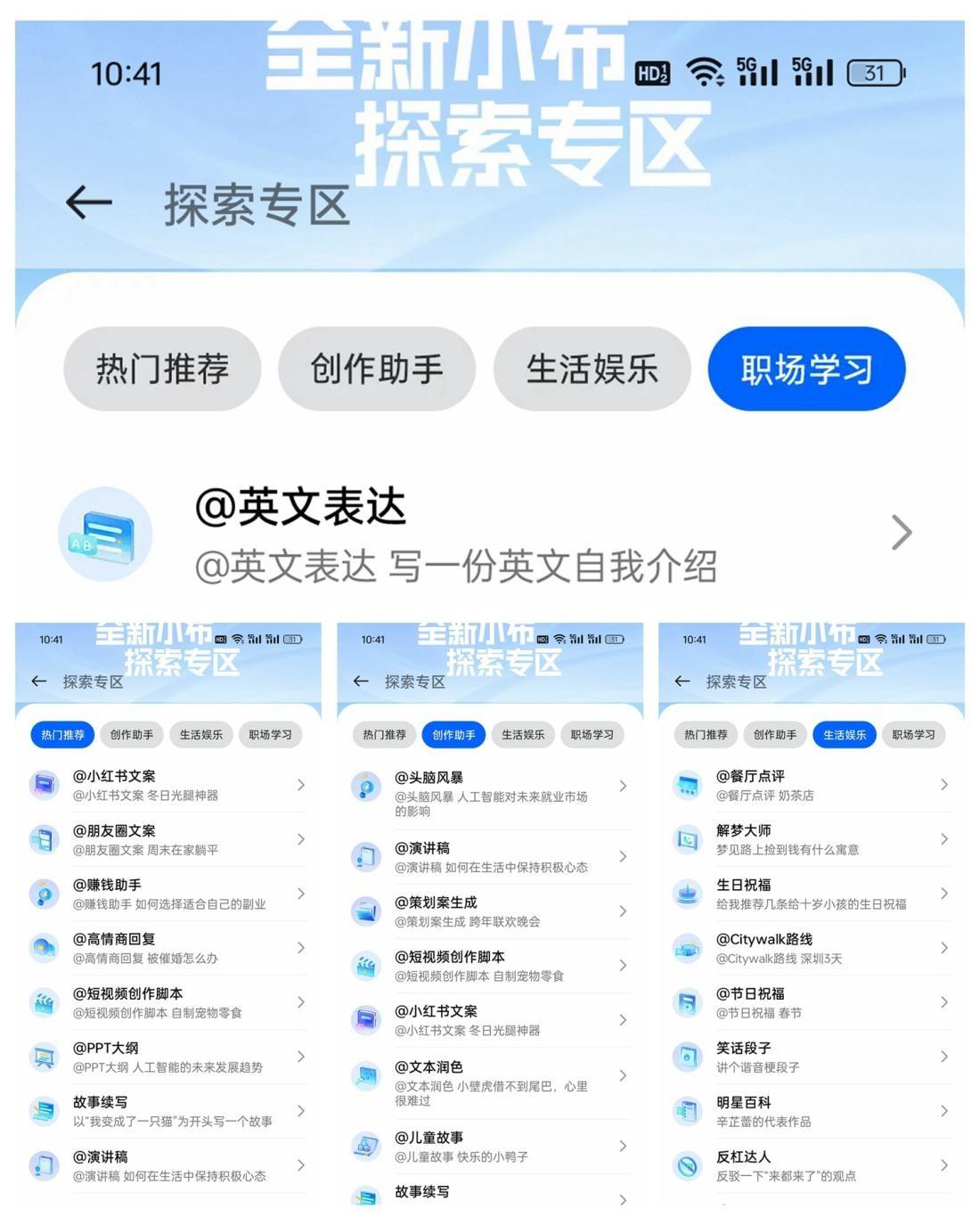 说到ai首先就是一加的小布助手了,除了很多手机智能助手所拥有的基础唤醒语音操作功能外,小布助手还能通过语音指令完成很多生活中常用的智能任务,比如简历撰写、智能生成文稿视频稿脚本、翻译、ppt、故事等等,一个语音命令,就能轻松完成以前要几个小时才能完成的工作。