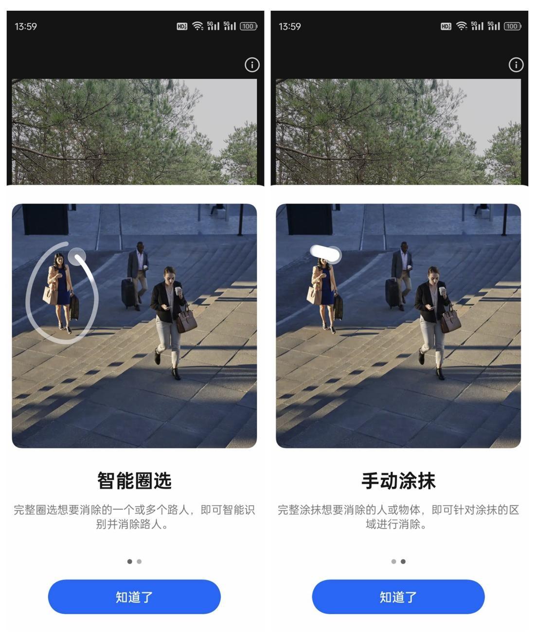 第二个是一加12的aigc消除功能,大家在日常拍照的时候经常会遇到一些不小心入镜的人或者场景,想要去掉却又不会专业的ps处理,这个时候只需要使用一加12的aigc消除功能,手动涂抹或者智能圈选需要消除掉的地方,aigc消除功能就会非常专业的去除掉你不想要的那部分画面,并且智能生成照片中的场景进行填充,看不出丝毫的违和感。