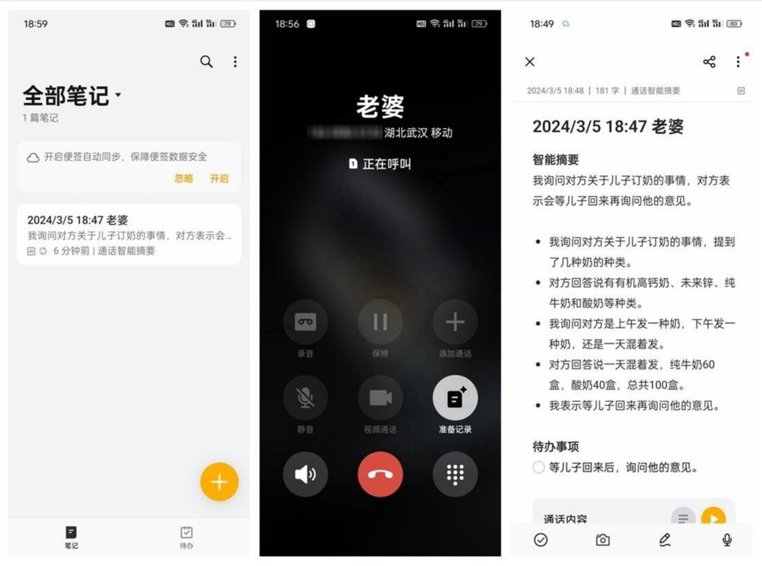 第三个一加12的ai通话摘要功能,这个功能在之前功能体验中有过介绍,它可以通过智能识别用户的通过内容,提取通话中提到的时间、地点、事件等关键信息,整理并记录出摘要信息生成笔记摘要,方便用户进行查看,值得一提的是现在不仅支持手机电话录音摘要,还支持qq、微信通话录音摘要,真的是太实用了。