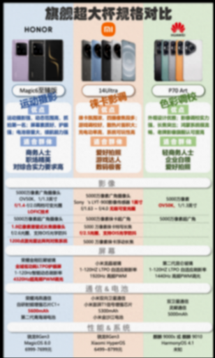 传华为p70系列就要发布了,仍将主打移动影像,带来重大突破。它的超大杯华为p70 art,与荣耀magic6系列最近推出的至臻版,以及小米14 ultra,是目前最受关注的影像旗舰。如果想更轻松拍出好看的照片,成为朋友圈中的“摄影大师”,谁更适合一点儿呢?
