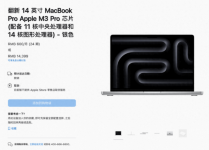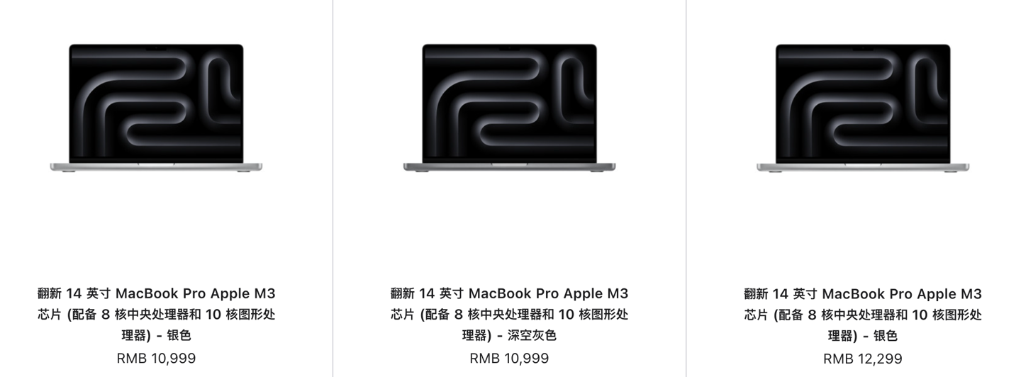 4 月 1 日消息,苹果中国j9com官网已经上架翻新版 14 英寸 m3 pro / max macbook pro 笔记本,售价 14399 元起。