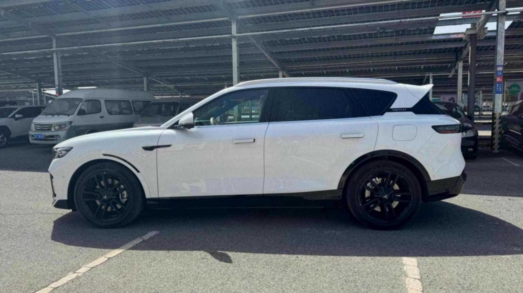 车身侧面相对现款车型,线条更加的凌厉,既保留了越野风范,又加入了运动气质。隐藏式门把手,搭配双5辐黑化镂空轮毂,拥有更低的风阻系数。岚图free车身尺寸为4905x1950x1645mm,轴距为2960mm。