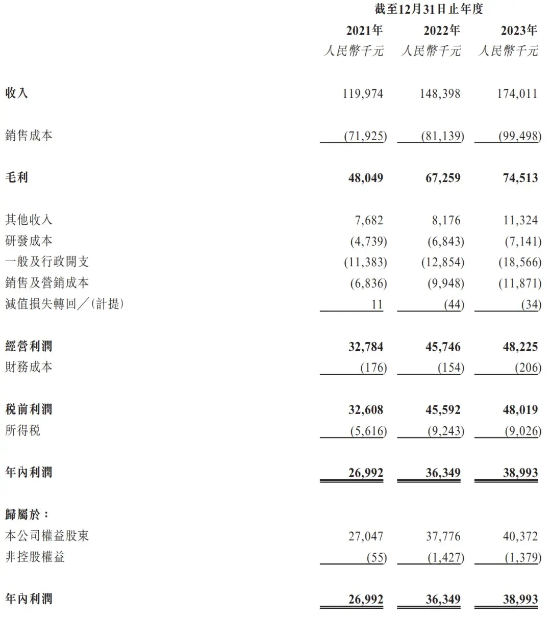 众淼创新2021年、2022年、2023年经营利润分别为3278万元、4575万元、 4822.5万元;年内利润分别为2699万元、3635万元、3899万元。
