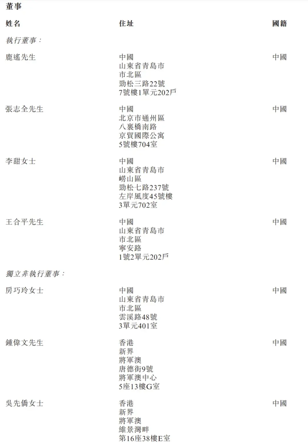 众淼创新执行董事分别为鹿遥、张志全、李甜女士、王合平;独立非执行董事分别为房巧玲女士、锺伟文、吴先侨女士。