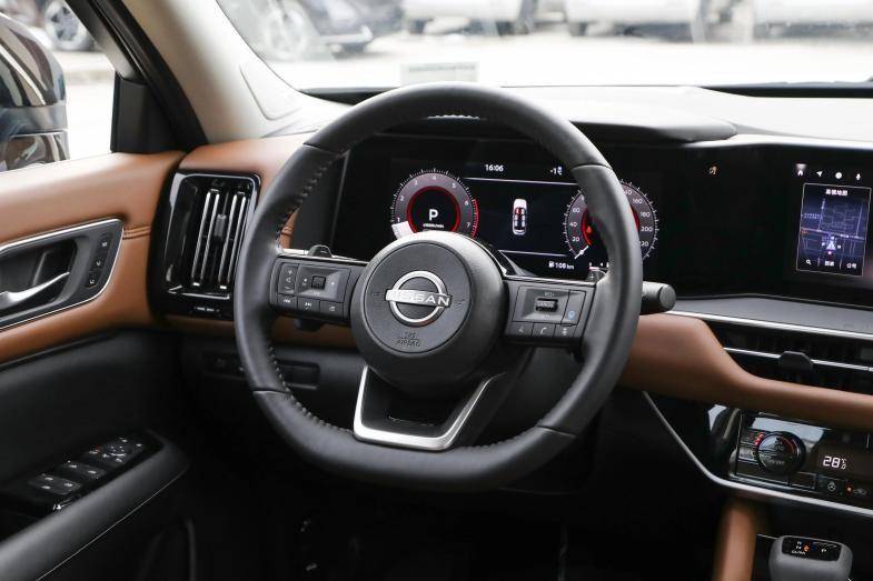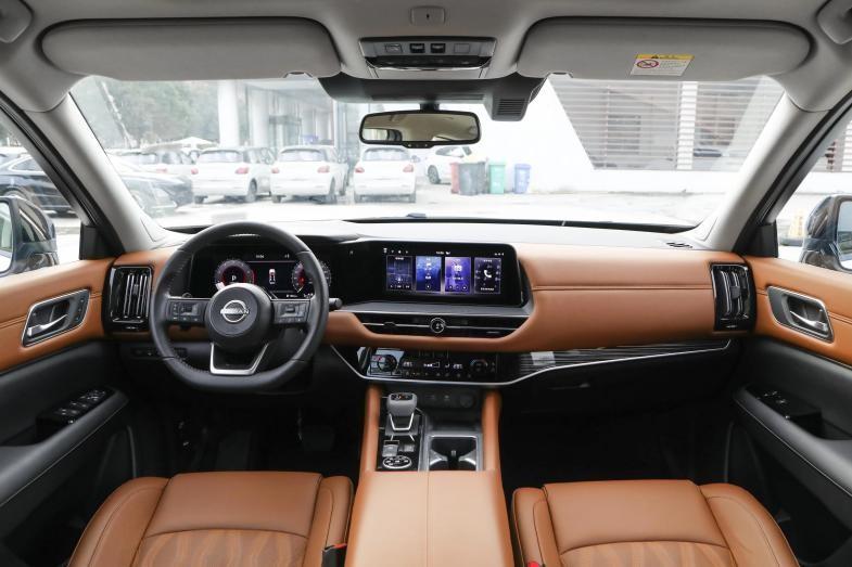 接下来我们来看日产探陆这台车的内饰,日产探戈陆这台车采用双联屏设计,仪表盘和中控屏幕尺寸都为12.3英寸,内饰配色采用了黑色和棕色混搭拼色设计,增加了内饰豪华感,三幅平底造型方向盘握感不错,方向盘功能也是一应俱全,像方向盘加热,方向盘位置记忆,换挡拨片这些功能都有所支持,全车共有13个喇叭bose音响,音响效果表现也会令人满意,这块12.3英寸中控屏幕搭载了日产最新nissan connect超智联2.0系统,虽然这块中控屏幕界面ui设计偏保守一些,但是一些常用娱乐功能比较齐全,比如在线视频,在线音乐以及一些第三方app功能都有所支持,日产探陆这台车还配备了全维降噪静音科技技术,大大减少了车辆行驶中的噪音感。