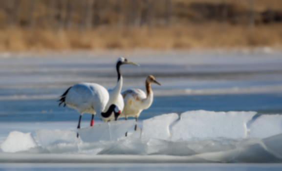 2022年12月29日,丹顶鹤南迁时来到野鸭湖湿地自然保护区停留栖息,且携带一幼鸟。