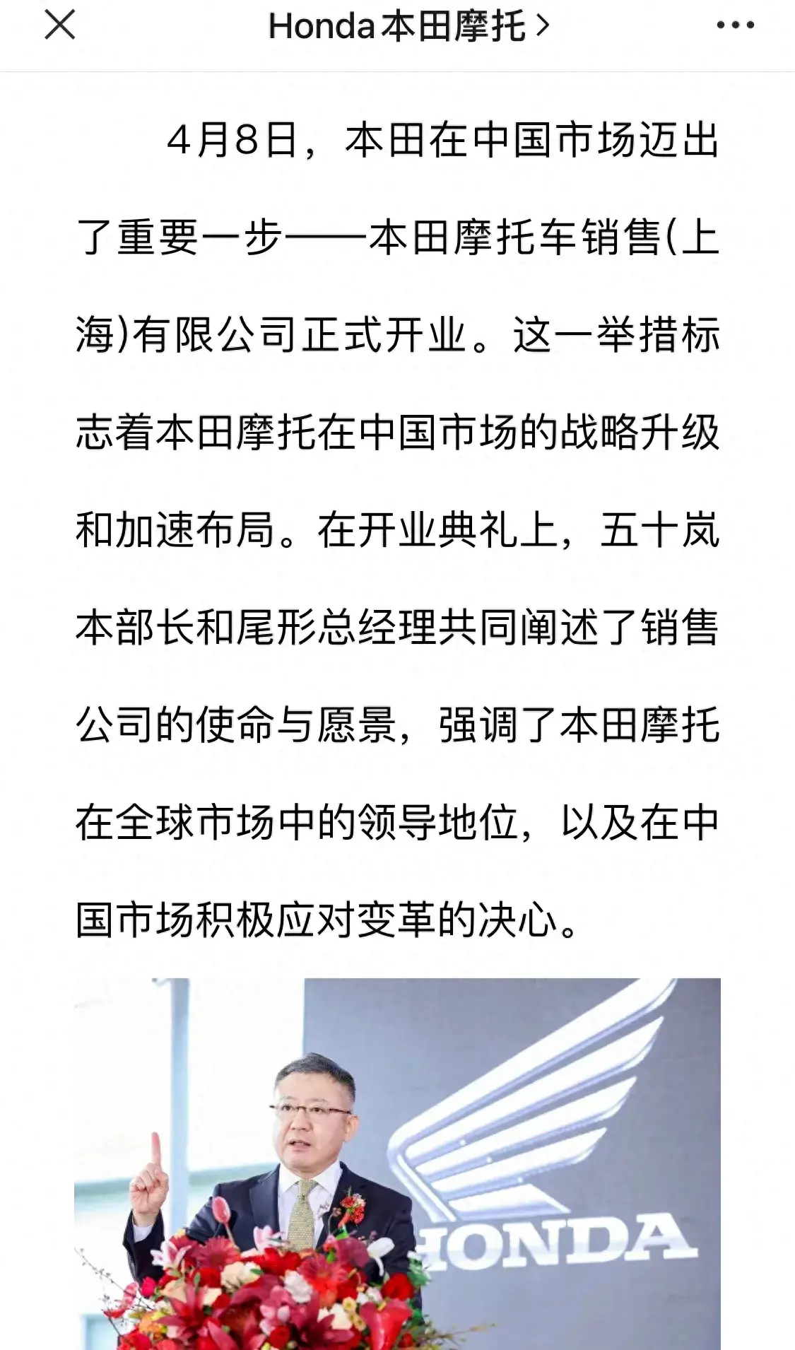 昨天,本田官方公众号发文称他们在上海的独资公司开业了,这本在去年就有公布,那么他们为什么会在上海开独资公司呢?首先得益于国家政策方面的放开,允许国外品牌独资了,这要在过去,国家为了扶持国内摩托车企业发展,你国外的公司想进来必须带上你的技术挑选国内的公司合作才行。