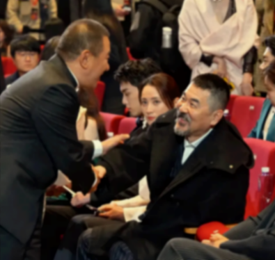 其妻子蒋勤勤只是微微抬头扫了一眼,看到是丁勇岱后,话也没说一句,就低头继续看手机了。不同的是,陈建斌与张艺谋见面时的态度则是截然相反。反而是坐在第二排的吴刚和董勇页站起来跟丁勇岱打了招呼。
