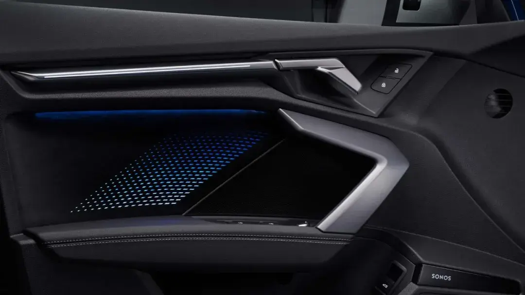 车内同样大玩灯效,中控台和杯座都增加了氛围灯,门板采用300次激光切割织物面板营造背光效果。中控采用10.1英寸触摸屏,其他基本没有什么新鲜的。