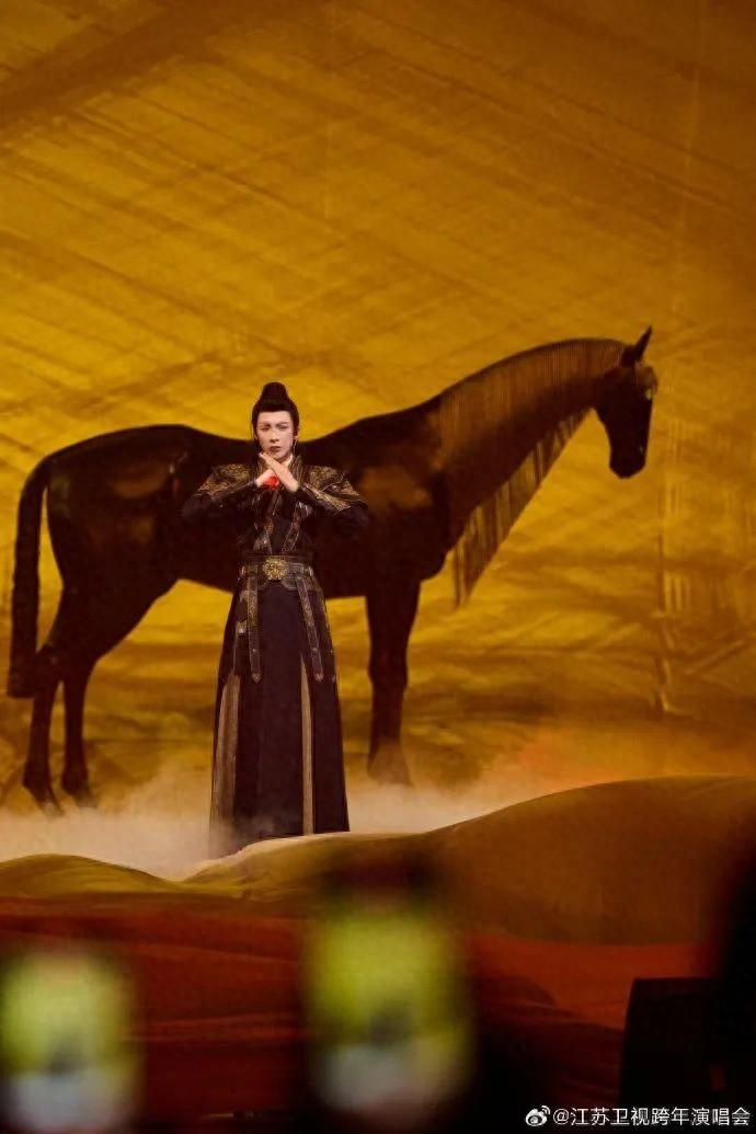 2023年12月31日播出的江苏卫视跨年晚会上,刘宇宁再度披上一身甲胄,唱起了《一念关山》里那首《奉上》。