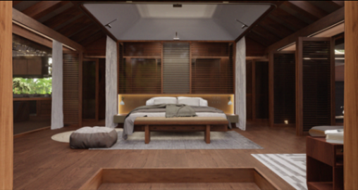 郜昂:在树屋的设计方案中,我们在室内增加了智能家居系统,全息投影、智能管家、智能光效,以及专门为智能人充电的躺椅。你提到了近未来感,对我来说就是适度,一切的科技便捷在这个故事中是恰当的,都是参与叙事的,不能喧宾夺主。