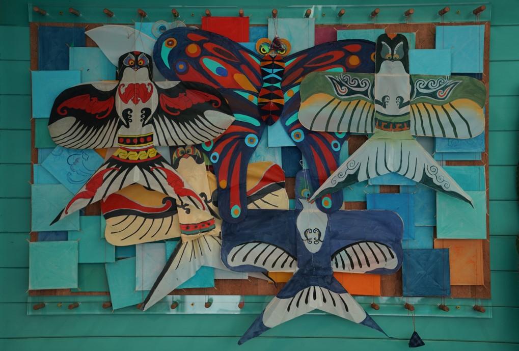 风筝在剧情中是秦奋一个一个手工制作的,我们请来传统风筝工匠进行教学,在秦奋家辟出一个风筝木作工作区,在传统风筝的基础上绘画部分增加了更多现代的色彩构成元素,用以凸显秦奋老小孩的性格。