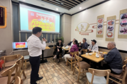 除了开展认知障碍科普宣传、预防干预等活动,天山路街道社区长者食堂还结合传统节假日开展各类主题活动,如联合社区卫生中心家庭医生工作室等推出“关爱长者食在健康”等营养健康科普宣讲,联合社区举办“九九重阳节 浓浓敬老情”重阳茶话会活动等,还在用餐高峰之余面向老人提供休憩、免费茶水和报纸杂志阅读等服务,进一步丰富社区长者的精神文化生活,也为居民们增添又一处公益性的多元活动空间。