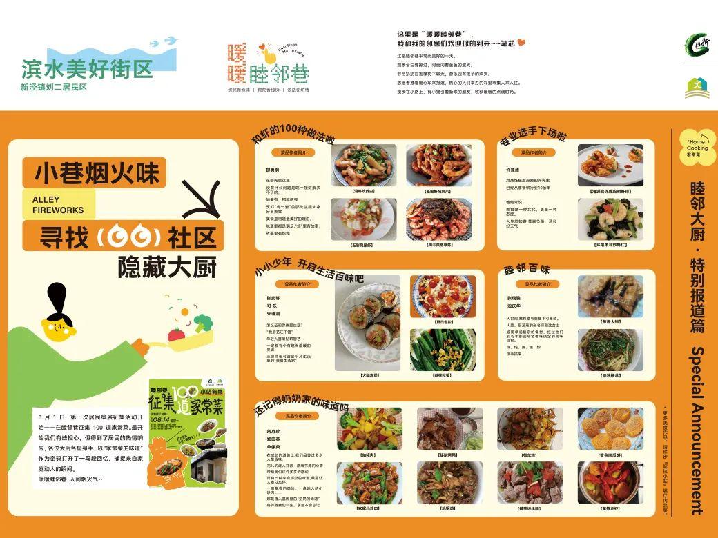 据了解,社区在项目前期通过“小站有展”活动,招募居民的好点子,确定展览主题,并组建了居民策展自治团队。通过征集100道家常菜,发掘出居民的味蕾故事,策划了“寻找100社区隐藏大厨”的展览,以“阿拉小站”为主场,以“睦邻巷”为纽带,展示了刘二居民区大家园里的百味人生。不仅如此,这些故事还被制成了“睦邻小报”,在社区的楼道、橱窗、活动场所供居民阅读。通过家常菜创作分享会,创作者与居民们交流菜谱、心得,共享家的味道和生活点滴。