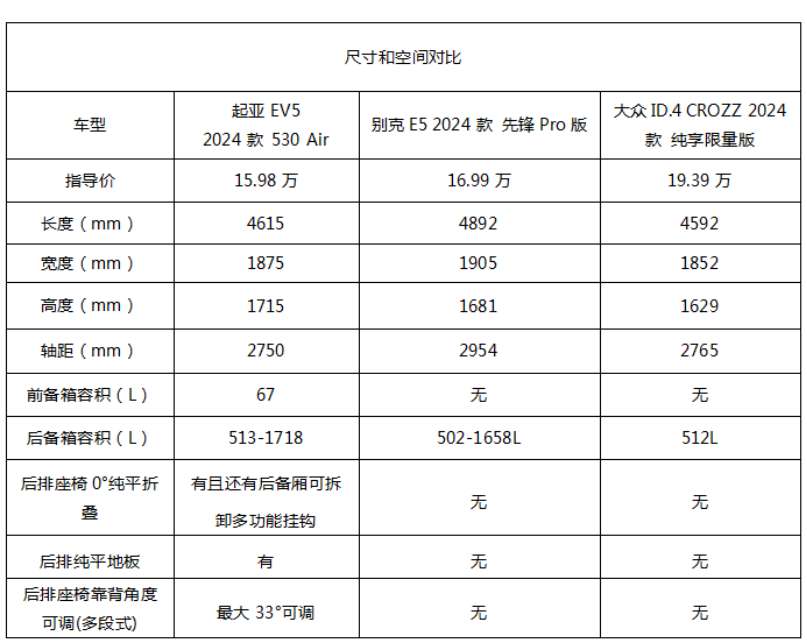 今天,我们选择了起亚ev5 2024款 530 air(指导价15.98万)、别克e5 2024款 先锋pro版(指导价16.99万)、大众id.4 crozz 2024款 纯享限量版(指导价19.39万)这三款车型,他们的表现能让用户满意吗?