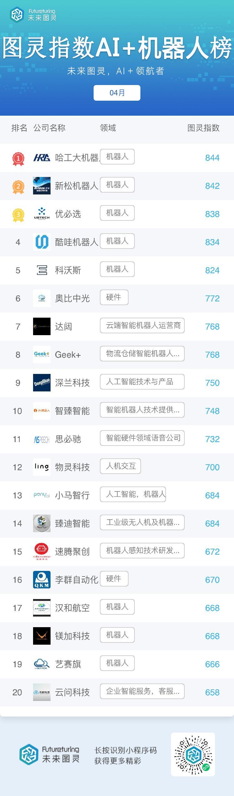 未来图灵还发布了图灵指数ai 机器人榜单、教育榜单和金融榜单。